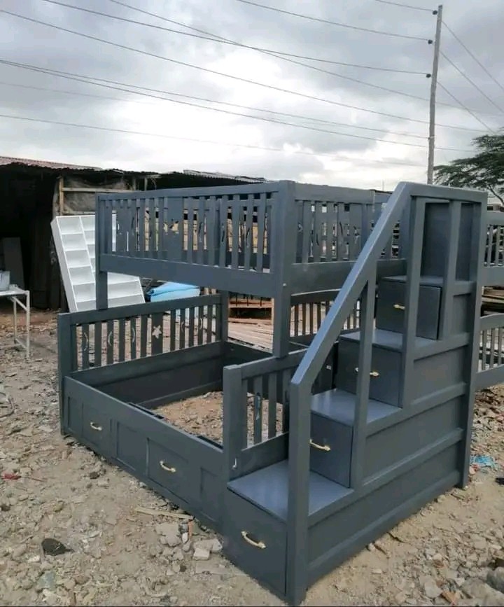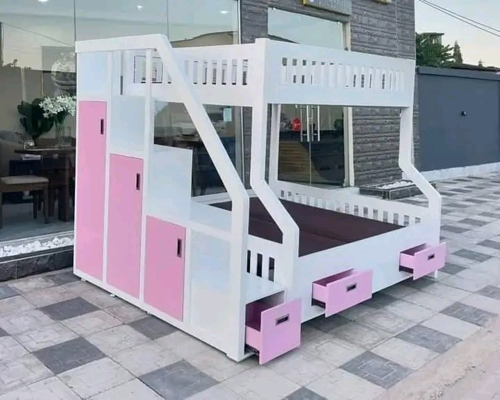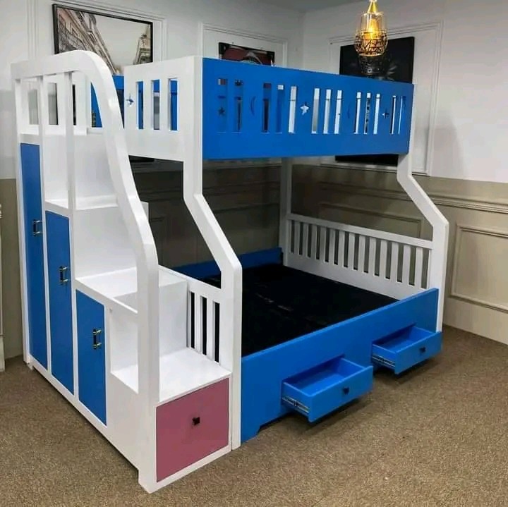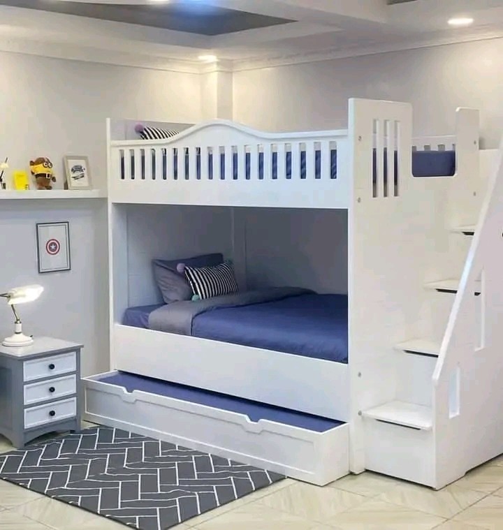 A multipurpose piece of furniture that is perfect for making the most of space in smaller bedrooms is a bunk bed with built-in storage and a stair design. It has two bedrooms: one on the top floor and one on the bottom floor. In addition to being safer than standard ladders, the stairs frequently have drawers or concealed spaces for additional storage. The bed frame has pull-out drawers, shelves, and cupboards for extra storage. This design is ideal for communal areas or children's rooms because it blends functionality, safety, and attractiveness.